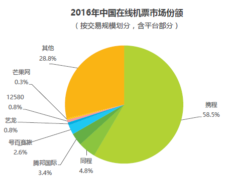 根據(jù)艾瑞咨詢的數(shù)據(jù),2016年攜程在機(jī)票、住宿領(lǐng)域的市場份額分別為58.5%、59.6%;同程在機(jī)票領(lǐng)域以4.8%的份額位居第二,在住宿領(lǐng)域以2.7%的份額位居第四,而美團(tuán)、藝龍分列二、三位。盡管2017年的市場份額還未出爐,但筆者預(yù)計變化不大。如果藝龍與同程合并,那么在“機(jī)票+住宿”領(lǐng)域,攜程的對手只就剩美團(tuán)了。
