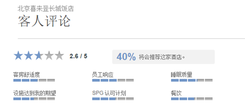 圖注:SPG官網(wǎng)北京喜來登長城飯店會員好評率僅為52%