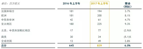 2017年上半年合并收入達(dá)9.22億歐元,同比增長8.3%(合并范圍和匯率不變的前提下),報(bào)告增長33.5%。