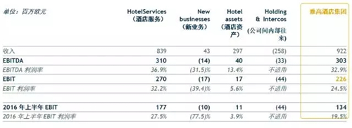HotelServices的EBIT利潤率也大幅增長,較2016年上半年的27.5%增長4.7%,達(dá)到32.2%。HotelServices能取得這樣的成就,主要是因?yàn)闃I(yè)績可觀,來自FRHI酒店的協(xié)同工作迅速推進(jìn),并且上半年數(shù)字費(fèi)用較低。