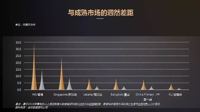 受限于中國(guó)經(jīng)濟(jì)發(fā)展與消費(fèi)力水平,即便是2016年創(chuàng)下了近年業(yè)績(jī)新高的中國(guó)一線城市與成熟市場(chǎng)香港和新加坡的經(jīng)營(yíng)收入差距仍然十分顯著,后者是前者的2.5倍左右。