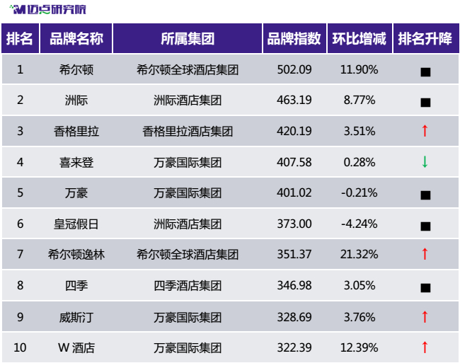 1.國(guó)際高端酒店品牌環(huán)比升降TOP5