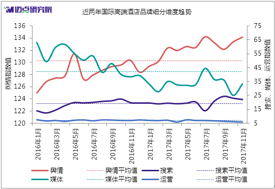 二、2017年11月國(guó)際高端酒店品牌影響力分析