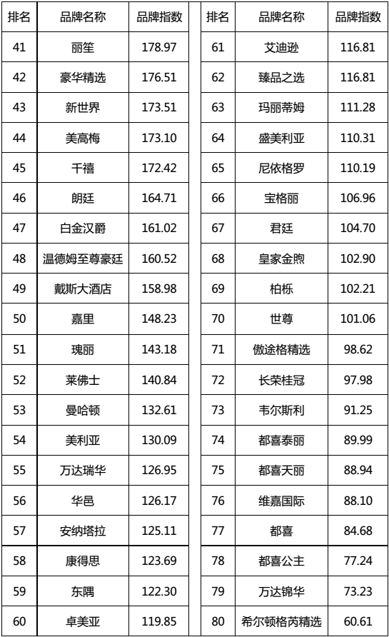 附:2017年11月國(guó)際高端酒店品牌指數(shù)完整榜單