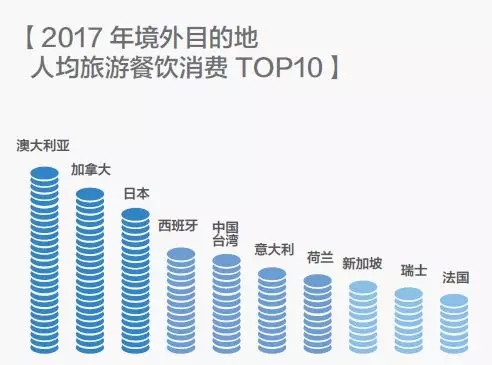 境外旅游餐飲人均消費(fèi)最高的目的地是澳大利亞、加拿大和日本,澳洲牛排、日本壽司等美食的價(jià)格均相對(duì)較高。