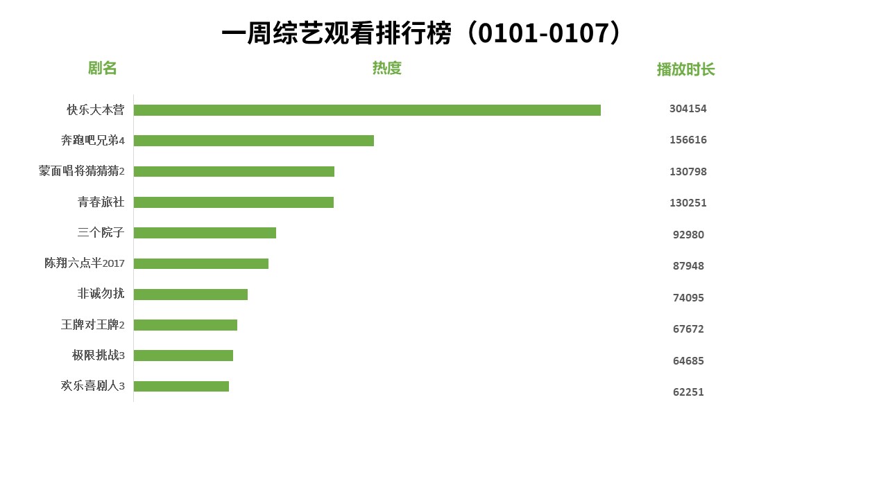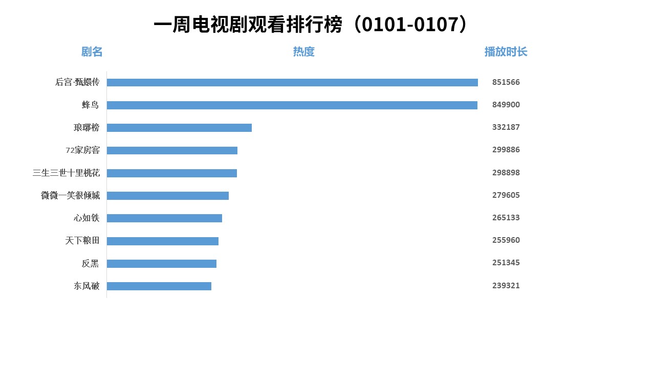 新聞來源:宏輝智通 發(fā)布日期:2018-01-18 瀏覽次數(shù):3205【流媒體網(wǎng)】消息:廣東IPTV發(fā)布1月1日-1月7日電視劇、電影、綜藝、卡通節(jié)目觀看排行榜。電視劇觀看排行榜前三位是《后宮·甄嬛傳》、《蜂鳥》、《瑯琊榜》; 電影觀看排行榜前三位是《羞羞的鐵拳》、《銀翼殺手2049》、《瘋狂動(dòng)物城》;綜藝觀看排行榜前三甲是《快樂大本營》、《奔跑吧兄弟4》、《蒙面唱將猜猜猜2》;卡通觀看排行榜前三位是《熊出沒》、《兔小貝兒歌》、《汪汪隊(duì)立大功》。