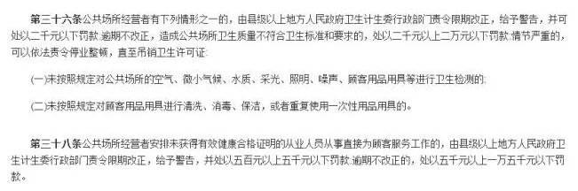 經(jīng)查詢,這些條款規(guī)定主要涉及到提供給客人的用品衛(wèi)生問題。評論人士認(rèn)為,若使用這兩條規(guī)定作為處罰依據(jù),反應(yīng)出來的問題,或涉及衛(wèi)生條件不達(dá)標(biāo)和一次性用品重復(fù)使用的問題。
