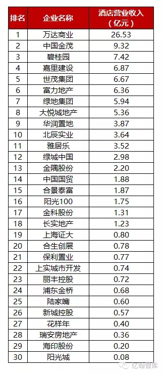 2016年上半年中國上市房企酒店營業(yè)收入Top30