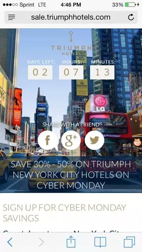 比如Triumph Hotels,他們發(fā)現(xiàn)酒店的其中一個客戶群體是帶著紐約旅行夢想的,因此,酒店特意推出了相關(guān)套餐,并以此為口號:“紐約夢倒計時”。