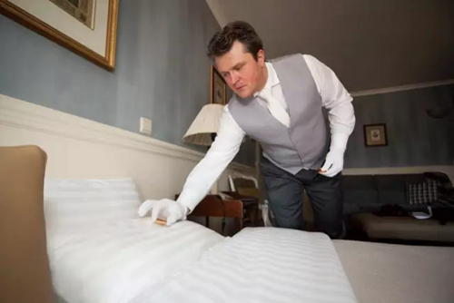 傍晚時分對已經(jīng)check in的房間進行二次整理是大部分五星級及以上酒店都會提供的服務(wù)。除了對已經(jīng)入住房間的清理、拉閉窗簾外,更多的是在床邊鋪上腳墊,床頭放上飲用水和杯子,遙控器放在床頭或是專門的容器里等一切想客人所想之服務(wù)。