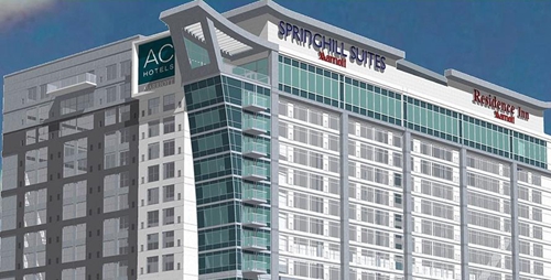 ?。ㄈf豪國際在美國田納西州首家開創(chuàng)性復(fù)合酒店Triple-Branded Property,同一建筑包含萬豪旗下的三個品牌酒店:Autograph Collection,SpringHill Suites以及Residence Inn)