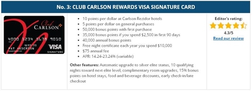 卡爾森俱樂部獎勵簽證簽名卡排名第三