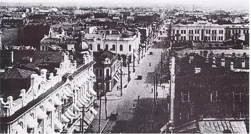 從對(duì)面“厚生醫(yī)院”樓上向東看馬迭爾賓館。