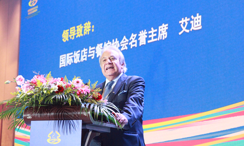 國際飯店與餐館協(xié)會主席加森·艾迪為開幕致辭。