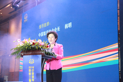 中國(guó)飯店協(xié)會(huì)會(huì)長(zhǎng)韓明發(fā)表了開幕致辭。