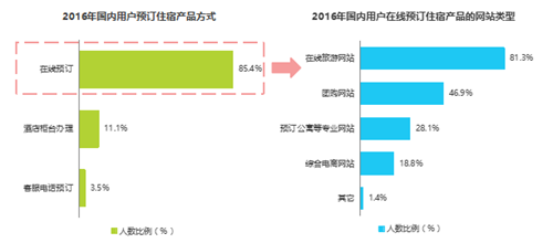 在用戶層面,預訂渠道發(fā)生了變化,線上預定為主流趨勢,在各類渠道中占比達到了85.4%。目前在線預訂以綜合類在線旅游網站為主,團購網站進入市場較晚但發(fā)展速度快位居第二。除了加強官方的預定渠道,其他在線預訂預訂渠道不可忽略。