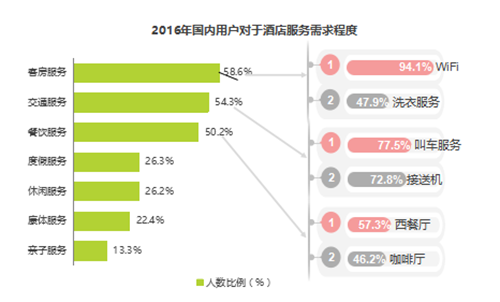 用戶在選擇服務的時候,多樣化個性化的服務相比以前更關注,除了客房餐飲交通三大層面,客房WIFI同樣不容忽視,有句話叫有床有沙發(fā)有WIFI,說明WIFI成為了必不可少的一部分。交通部分主要體現的叫車服務跟接送機服務,餐飲層面西餐廳越來越受重視,說明人們對小資生活的追求度比較高,未來酒店建設這些要素都要引起重視。