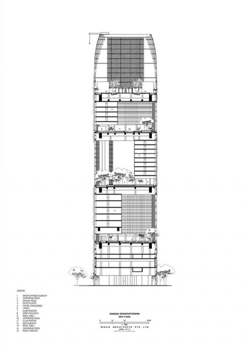 有意思的是,WOHA 在 Oasia 的設(shè)計中提出一個有點類似于三明治的設(shè)計概念。