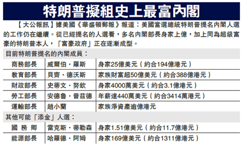 特朗普的最富內閣